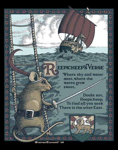 “At the moment, with a crunch, the boat ran aground. The water was too shallow now for it. ‘This,’ said Reepicheep, ‘is where I go on alone.’