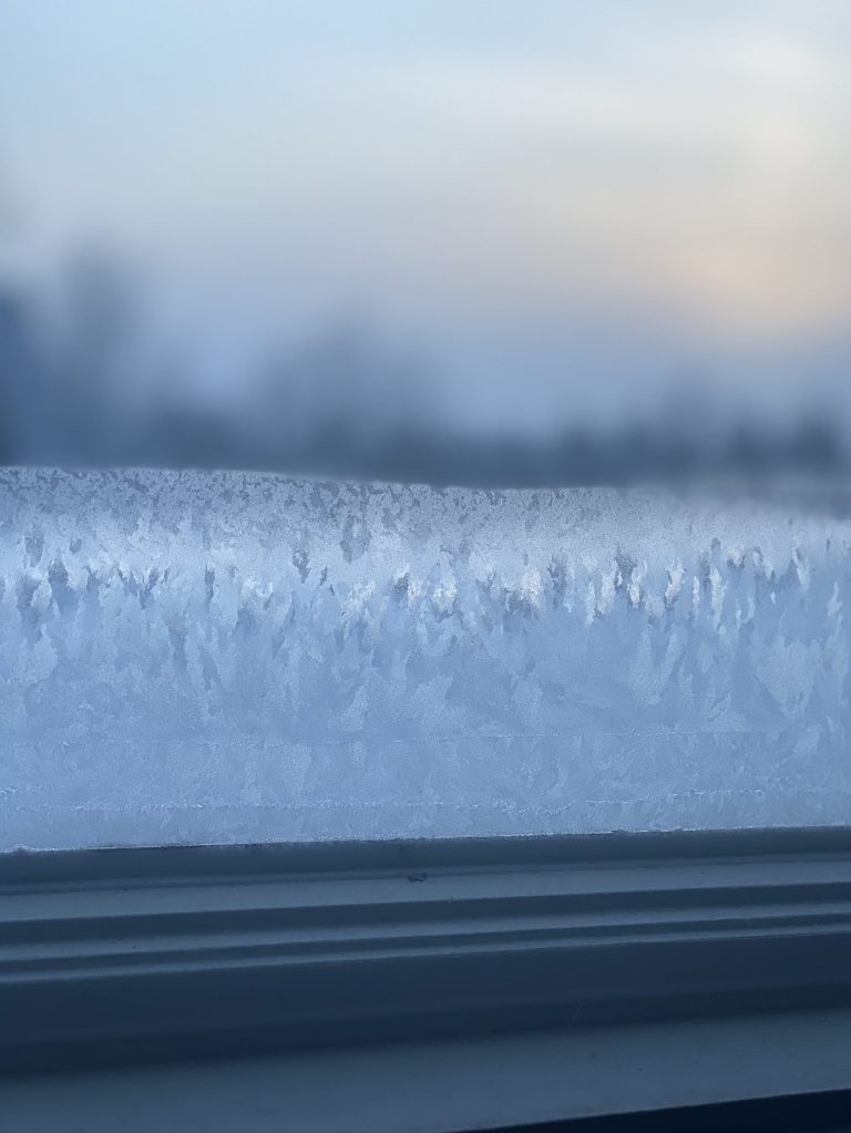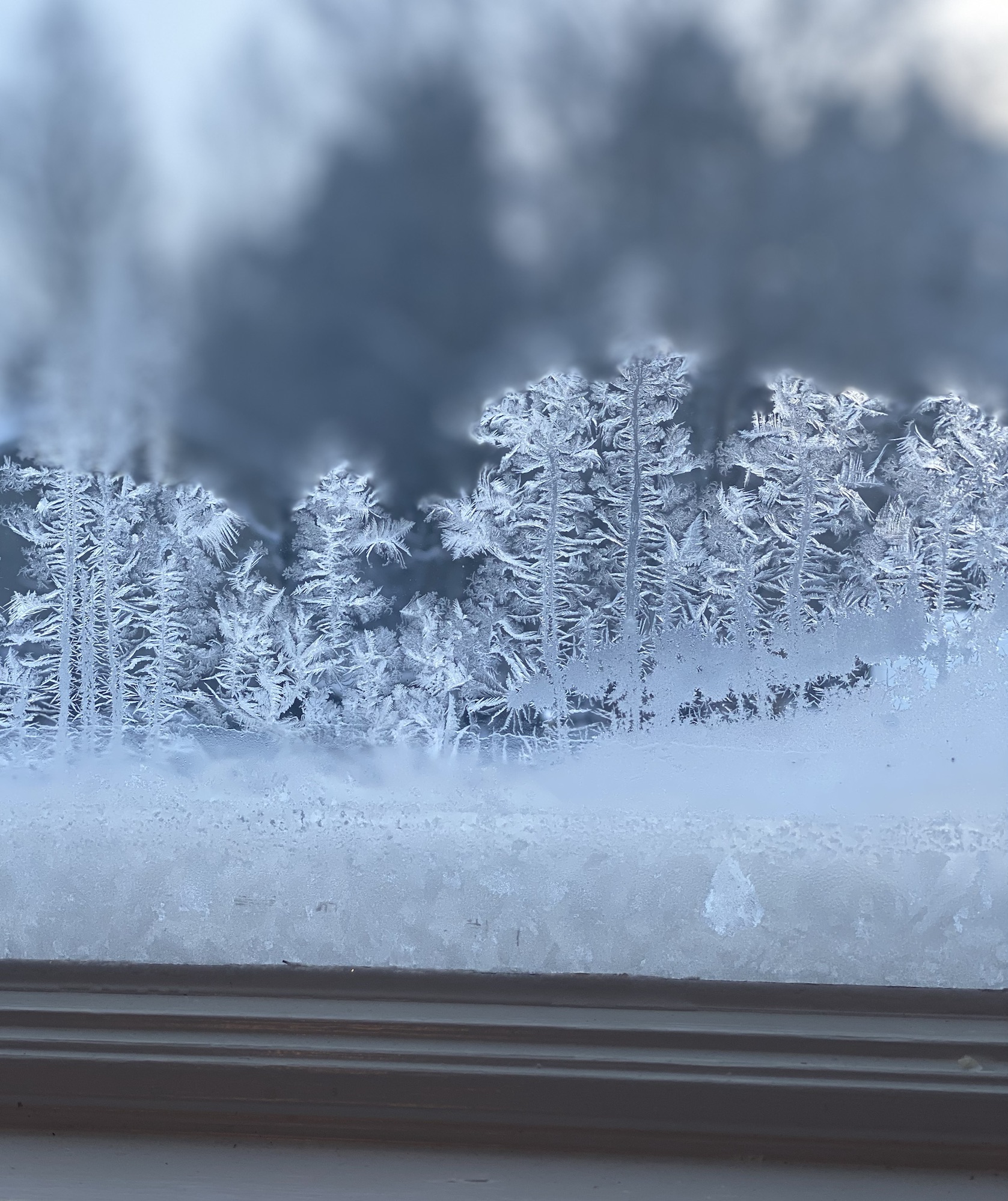 In the blue-grey silence of morning We fold the blankets back Fluff the pillows Wash our faces Listen to the coffee brewing Warm caffeine scent wafting Stare out frosty windows and wonder