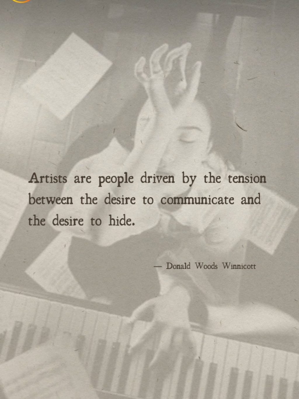 “Artists are people driven by the tension between the desire to communicate and the desire to hide.” – Donald Woods Winnicott